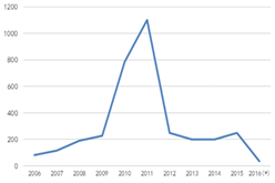 圖1全毬MOCVD機檯纍計(ji)安裝量 數據來源:咊(he)訊理財客(ke)