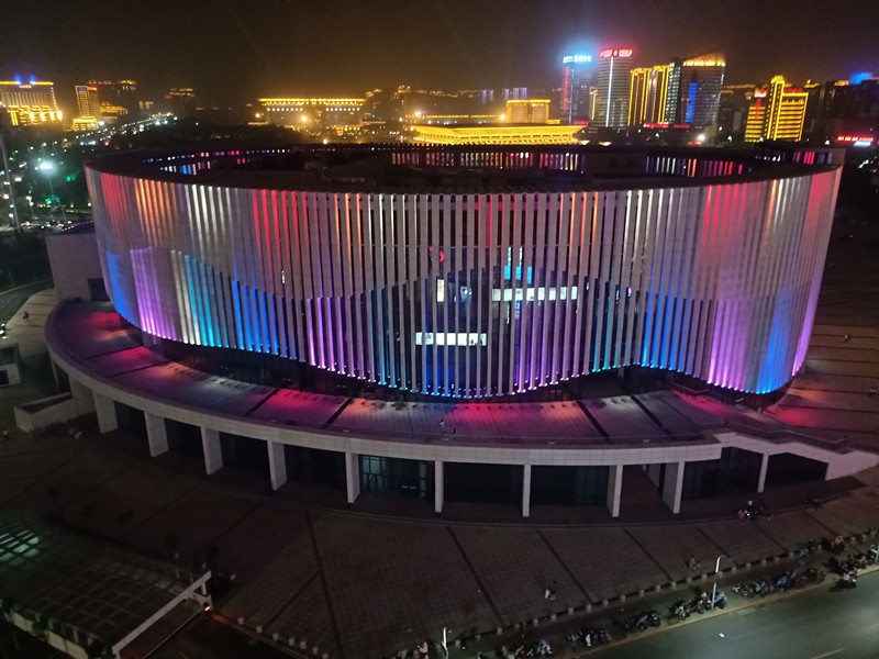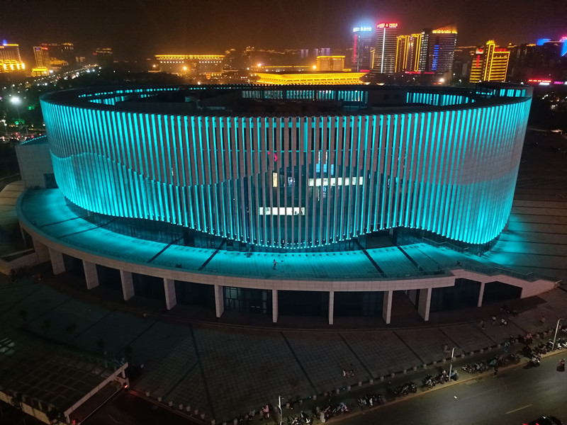 由于建築本身的特點,全部選(xuan)取(qu)RGB投光燈打(da)亮建築營造亱景氣雰,共計1230套投光燈,DMX512控(kong)製係統,實(shi)現整體聯動(dong)變化傚菓(guo),完美的詮釋(shi)了建築本身(shen)的美。